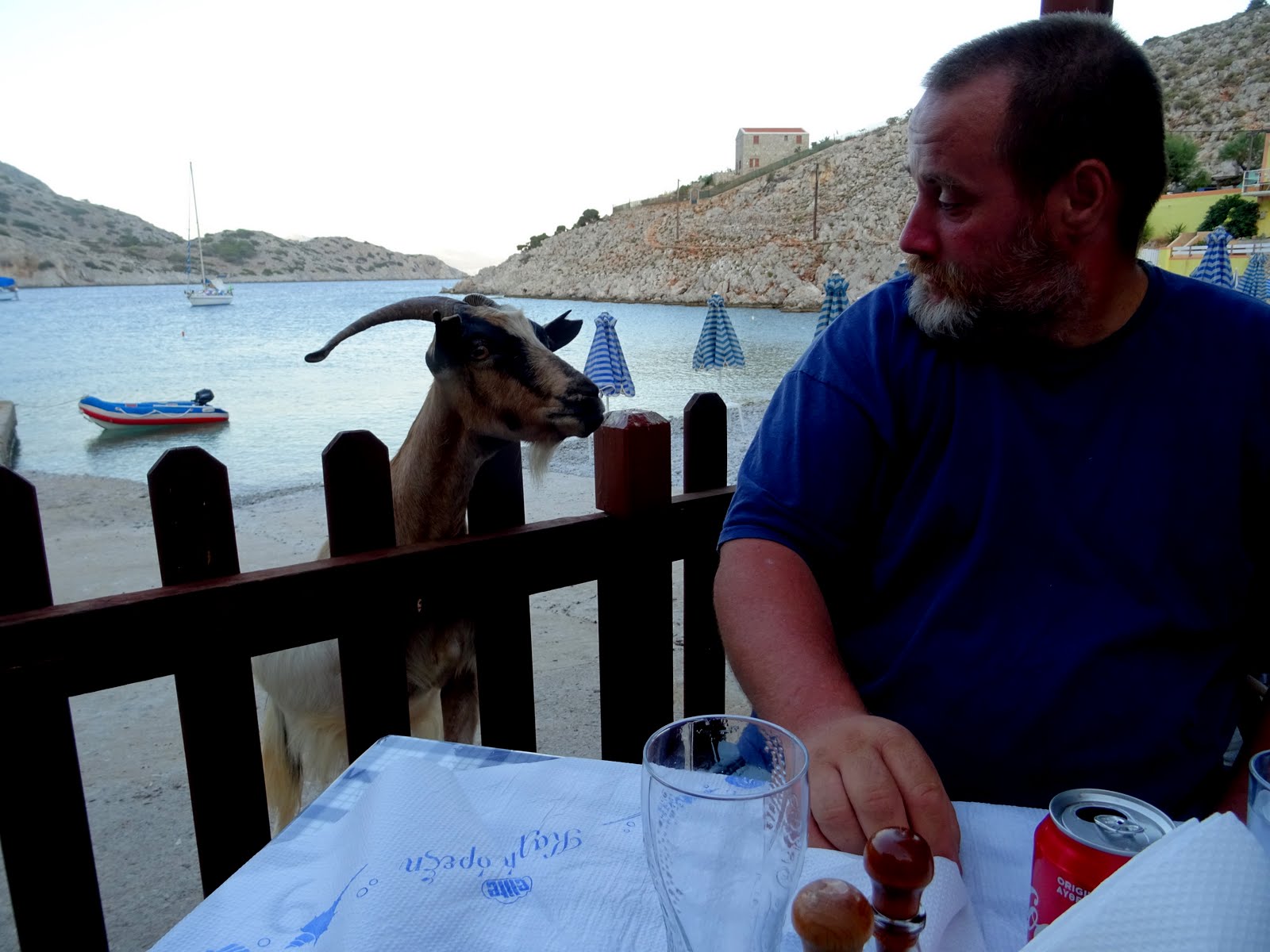 Puis un autre mouillage Caprin où la taverne et cerné par les chèvres quémandeuses qui bouffe tout se que l’on donne, les os de leurs consœurs et les serviettes en papiers table nette.